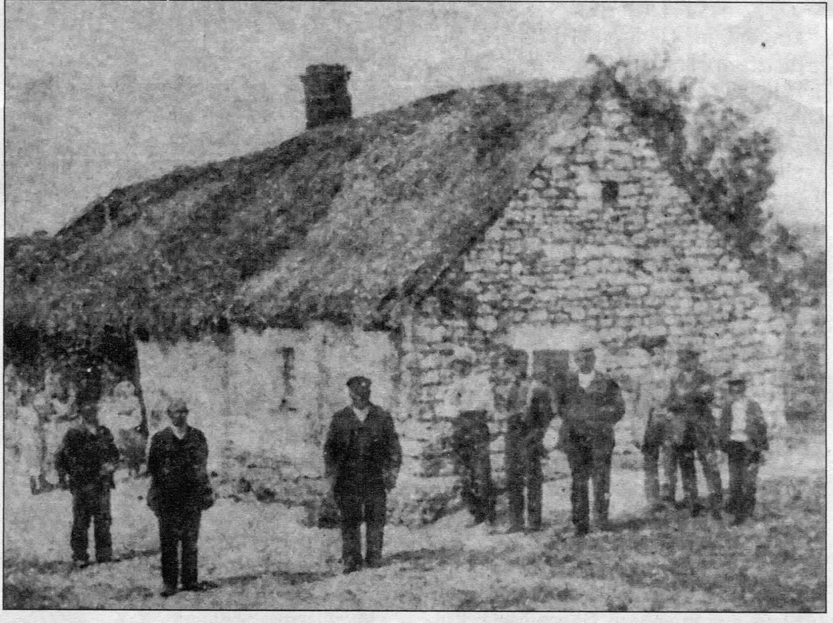 Bild oben: Das letzte “ Kronshäuschen“, schilfgedeckt und mit den typischen gekreuzten Pferdeköpfen am First verziert, war 1911 etwa 100 Jahre alt und stand in der Kolonie Speyer. Grafik aus dem Buch von Helmut Seebach