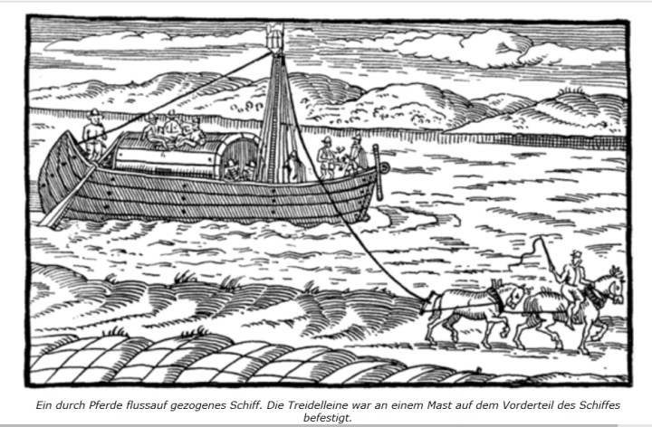 Über das Thema “ Treideln” , -also über das Ziehen von Schiffen auf Binnenflüssen,- habe ich hier weitere Informationen eingefügt: